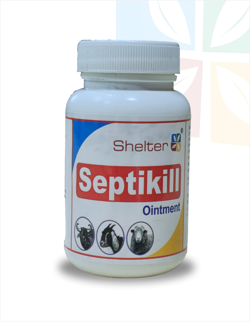 Septikill Ointment is a broad-spectrum multipurpose ointment for external use in animals for various skin diseases. Septikill Ointment is used as an antiseptic, bactericidal, fungicidal, anti-pruritic, and anti-inflammatory agent. It helps to treat injuries and all types of wounds.